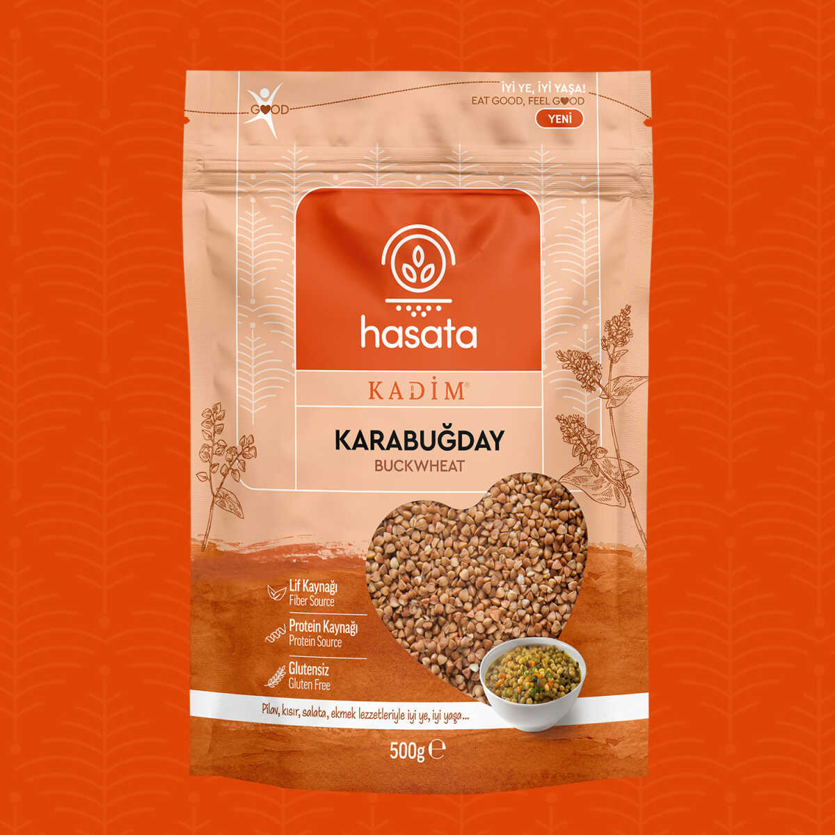 Hasata Kadim Karabuğday, tohumdan sofraya Karabuğdayın bütün iyiliğini ve lezzetini içinde korur. Lif ve protein kaynağı içeriği sayesinde doyurucu ve besleyici öğünler sağlarken, gluten de içermez.